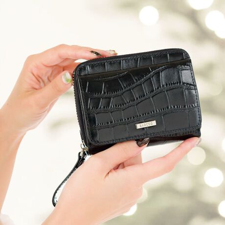 【BARCOS/バルコス】マットレザークロコダイル型押し蛇腹ミニウォレット