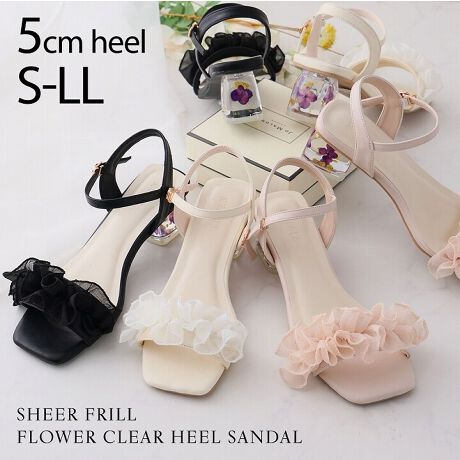 【26春夏新作】シアーフリルフラワークリアヒールストラップサンダル