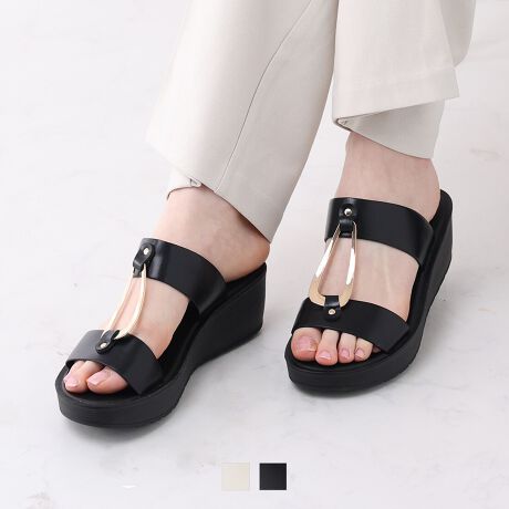 【26春夏新作】ゴールドモチーフウェッジコンフォートサンダル
