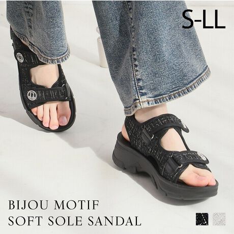 【26春夏新作】キラキラビジューモチーフやわらかソールサンダル