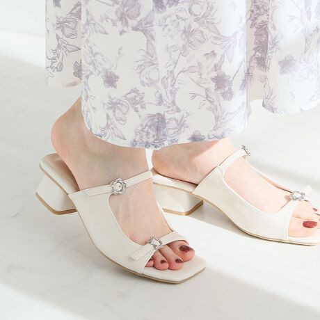 【26春夏新作】ダブルフラワーバックルストラップミュールサンダル