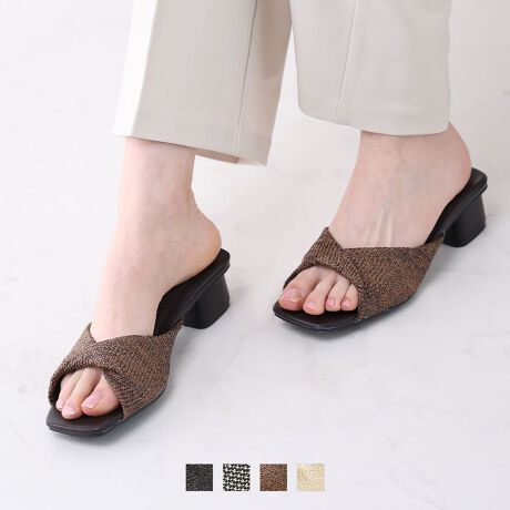 ・ラフィアメッシュが新鮮なナチュラル感たっぷりのミュールサンダル!