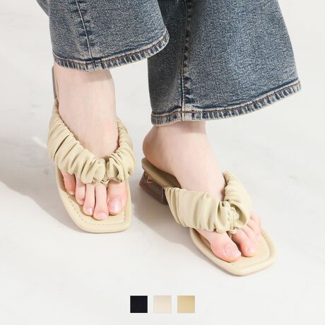 ・くしゅくしゅのシャーリングデザインが目を引くトングサンダル!