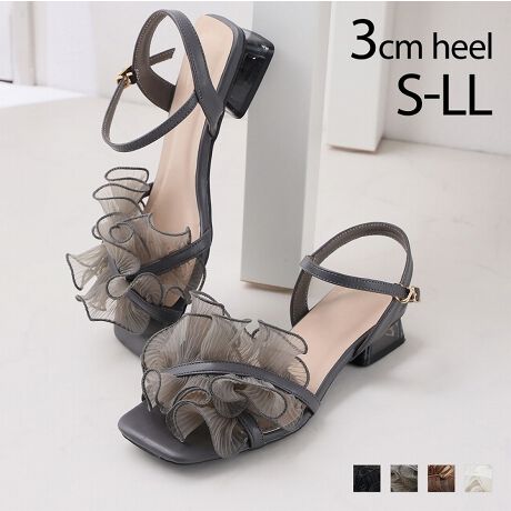 ・ボリュームのあるシアーフリルが華やかなストラップクリアヒールサンダル!