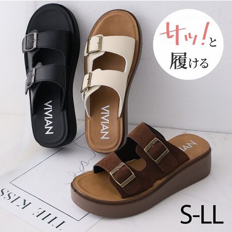 【26春夏新作】サッ!と履ける厚底コンフォートダブルバックルサンダル