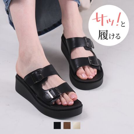【26春夏新作】サッ!と履ける厚底コンフォートダブルバックルサンダル