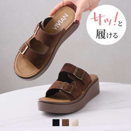【26春夏新作】サッ!と履ける厚底コンフォートダブルバックルサンダル
