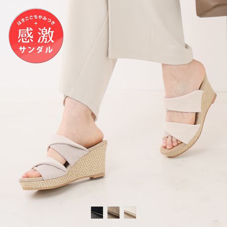【26春夏新作】【S-LLサイズ対応】8cmヒールツイストデザインウェッジ感激サンダル