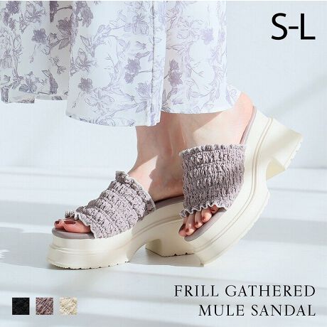 【26春夏新作】フリルギャザー厚底プラットフォームミュールサンダル