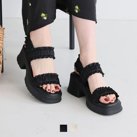【26春夏新作】フリルギャザー厚底サンダル