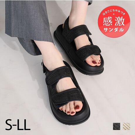 【26春夏新作】履きごこちやみつき!ダブルベルクロ厚底感激サンダル