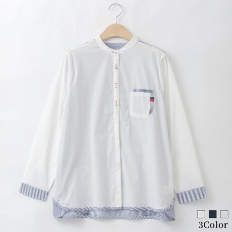 ダブルポケットバンドカラーデザインシャツ