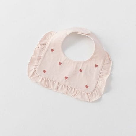 ハート柄の刺しゅうをあしらった可愛らしいスタイ
