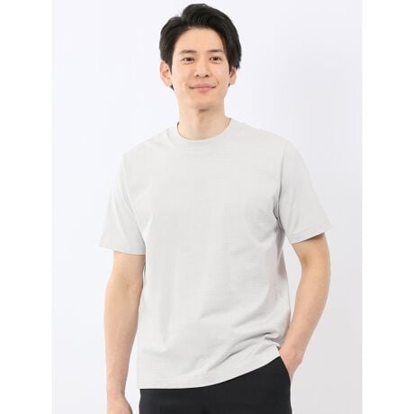 柔らかい風合が肌に優しいコットン100%の天竺素材を使用しています。特殊加工による毛羽を極限までそぎ落とした美しい表面感、シルケット加工によるしなかやな肌触りとサラッとした着心地、透けにくくて型崩れしにくい優れた耐久性が特徴です。さらに、ストレッチ・接触冷感・抗菌防臭・UVカット機能付き。
