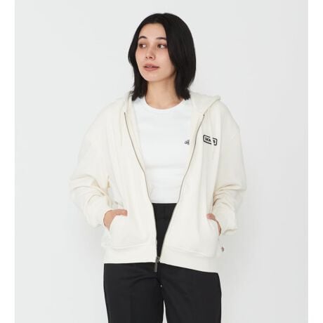 [型番:DA88BT-0001]綿をベースに、ポリエステルを混紡した裏毛素材を使用し、左胸にDickiesロゴ刺繍を施したZIP UPフーディー。主張しすぎない刺繍デザインで、スタイリングに自然と馴染む一着です。着丈は長すぎず短すぎない、バランスの取りやすい丈感に設定。デイリーに使いやすい、定番として活躍するアイテムです。
