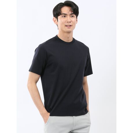 柔らかい風合が肌に優しいコットン100%の天竺素材を使用しています。特殊加工による毛羽を極限までそぎ落とした美しい表面感、シルケット加工によるしなかやな肌触りとサラッとした着心地、透けにくくて型崩れしにくい優れた耐久性が特徴です。さらに、ストレッチ・接触冷感・抗菌防臭・UVカット機能付き。