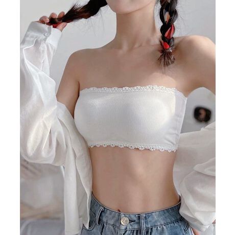 レースがアクセントになったフェミニンなリブチューブトップ。