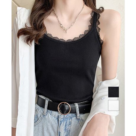 繊細なレースデザインが女性らしさを引き立てるリブキャミソール。
