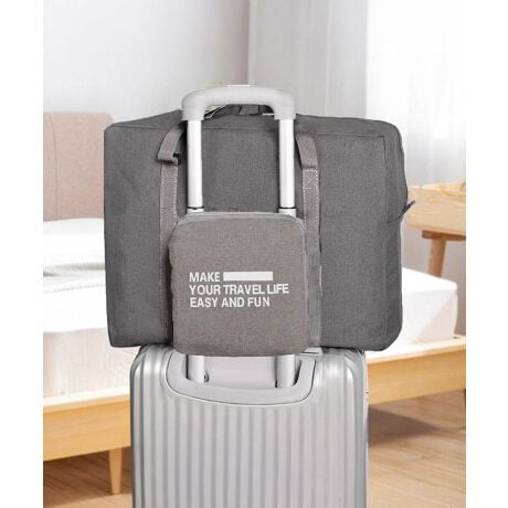 折りたたみ式でコンパクトに収納できるトラベルバッグ。