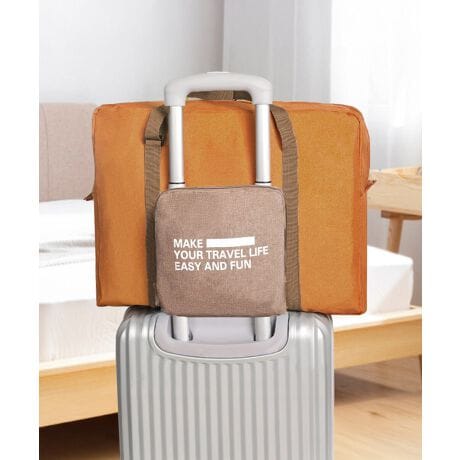 折りたたみ式でコンパクトに収納できるトラベルバッグ。