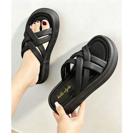 クロスデザインが目を引く、シンプルで抜け感のあるスライドサンダル。