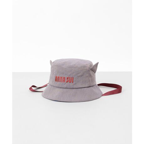 ネコ耳がサイドのポケットに収納できて、その日の気分に合わせて被りこなす事のできるハットです。26SSディレクションカラーのANNA SUIロゴ刺しゅうとドローコードがポイントです。