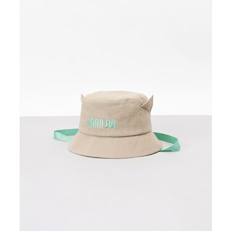 ネコ耳がサイドのポケットに収納できて、その日の気分に合わせて被りこなす事のできるハットです。26SSディレクションカラーのANNA SUIロゴ刺しゅうとドローコードがポイントです。