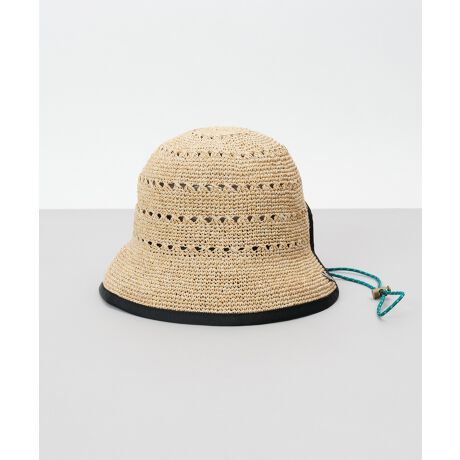 後ろつばが首に当たらないボンネット型の手編み天然ハットです。ドローコードにバタフライモチーフのビーズを使い可愛らしく仕上げました。ドローコードが取り外しできるのでシンプルに被る事もできます。