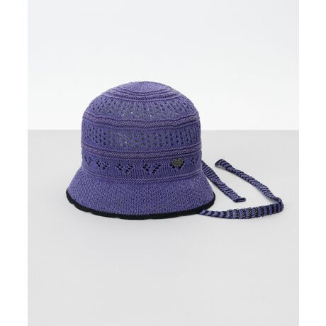 サイドのさりげないハート柄のジャカードとボーダーのあご紐がポイントのニットハットです。後ろつばが短くなっていてボンネット風に被ることもできます。手洗いができて日本製です。
