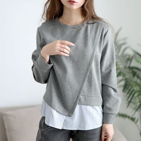 【大きいサイズ】 重ね着風アシメデザイントップス 大きいサイズ レディース トップス スウェット
