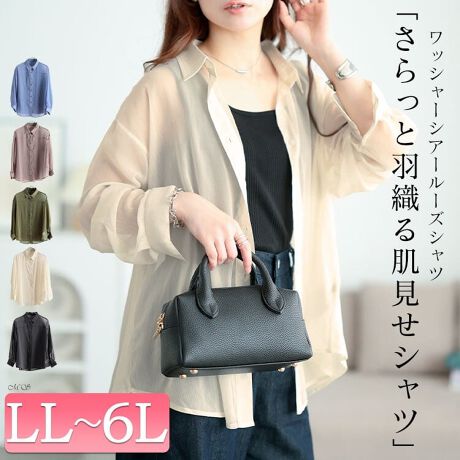 【大きいサイズ】 ワッシャーシアールーズシャツ 大きいサイズ レディース トップス シャツ