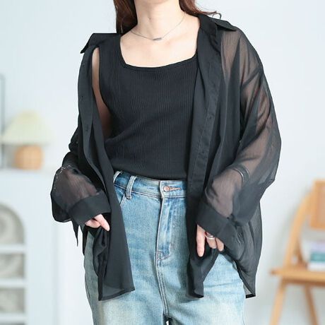 人気のシアーシャツにミドル丈が新登場。軽やかな透け感が魅力のワッシャーシアールーズシャツです。デイリーに取り入れやすいベーシックデザイン。裾に向かって自然に広がるAラインシルエットが腰まわりやヒップラインをカバー。シワ感のあるワッシャー加工が無地でも奥行きをつくってくれます。カジュアルコーデからきれいめカジュアルに仕上げる着回し力も魅力。日差し対策、冷房対策にも活躍してくれるので、持っておきたいアイテム。定番ポジションとしてワードローブに加えたくなる一枚です。