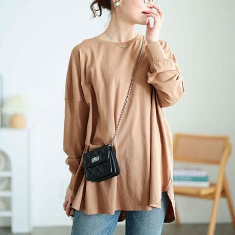ゆるっと着れる新定番☆ラウンドヘムコットンプルオーバーオーバーシルエットがつくり出すラフな落ち感でお洒落に体型隠し◎前後差のあるラウンドヘムで気になるヒップラインをカバーしながら自然に脚長見せ☆全色欲しくなる!大人の差し色に丁度いい豊富なカラーバリエーション◎ウエストイン・アウトどちらも楽しめるので着こなしの幅がグッと広がる♪
