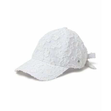 リボン仕様のストラップと繊細な素材感が魅力の、フェミニンキャップでリアストラップをリボン仕様にアレンジし、女性らしい柔らかな印象に。フロントのフラッグロゴはメタルピンで上品に表現。適度なハリと透け感を兼ね備えた、カットジャカード素材を使用。春夏のスタイリングに華やかさを添える、存在感のあるデザイン。