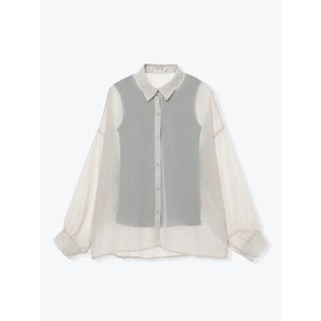 [型番:26560773087]軽やかな透け感が魅力のシフォン素材で仕立てたシャツ。程よくゆとりのあるシルエットがやわらかな雰囲気を演出し、さらりと着るだけで抜け感のあるスタイリングに仕上がります。デニムやスラックスと合わせたカジュアルな装いから、スカートと合わせた上品なコーディネートまで幅広く活躍する一枚です。