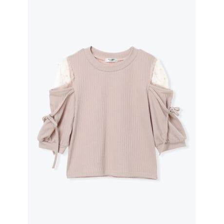 [型番:26550729543]チュール切り替えにパール調を散りばめたデザインが魅力的なプルオーバー。スリーブにはリボンをあしらっており、ガーリーなアクセントになります。肌触りの良いテレコ素材が着心地の良さを実現。どんなボトムスにも合わせやすく、着回しの幅が広がるアイテムです。
