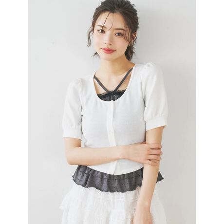 リボンレースレイヤード風フリルトップス