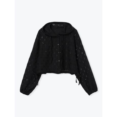 [型番:26550732158]繊細な刺しゅうレースを使用した、軽やかな印象のフーディーパーカー。ショート丈のバランスでスタイルアップ効果もあり、タンクトップやキャミソールを合わせたレイヤードスタイルがおすすめ。デニムやカーゴパンツを穿いたラフな着こなしにも、スカートと合わせたミックスコーデにも活躍します。