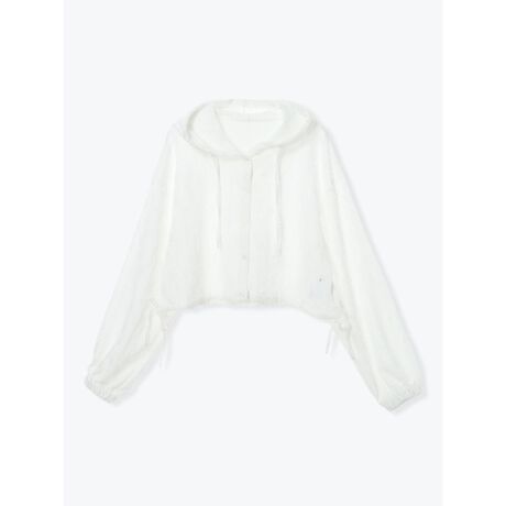 [型番:26550732158]繊細な刺しゅうレースを使用した、軽やかな印象のフーディーパーカー。ショート丈のバランスでスタイルアップ効果もあり、タンクトップやキャミソールを合わせたレイヤードスタイルがおすすめ。デニムやカーゴパンツを穿いたラフな着こなしにも、スカートと合わせたミックスコーデにも活躍します。