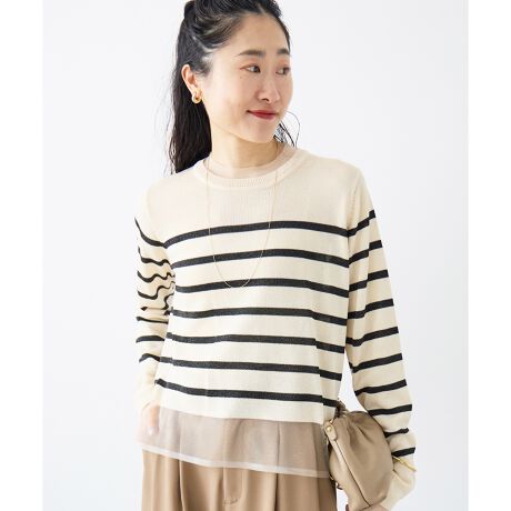 シアーを重ねたようなデザインが目を惹く、レイヤード風のボーダーニット。