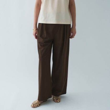 ・身体のラインを拾いにくく、すっきりとしたシルエットで着用できるワイドパンツ。