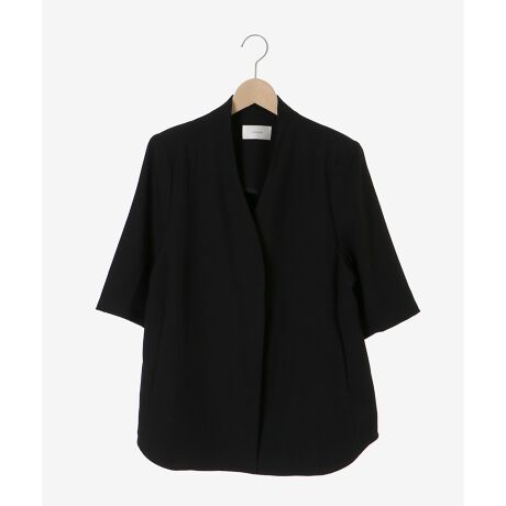 [型番:3763070805]ハーフスリーブ仕様で、季節の変わり目や暖かい時期にもオススメのジャケット。程よくゆとりのあるサイズ感で、Tシャツやブラウスの上からもさらっと羽織りやすいのが魅力◎肩パットは取り外し可能なので、シーンに合わせて使い分けいただけます。