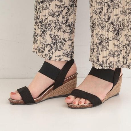【安定感】ウェッジソールなのでヒールがあっても高さを感じにくく安定感あり。さらに滑りにくいアウトソールです。