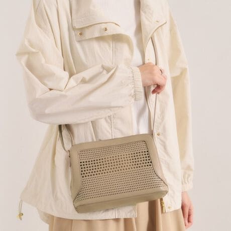 スクエアのパンチングパネルが目を引く、ほどよく抜け感のあるミニショルダー。