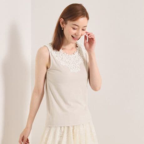 胸元に華やかなレースをあしらったデザインで、シンプル過ぎずコーディネートのアクセントになります。