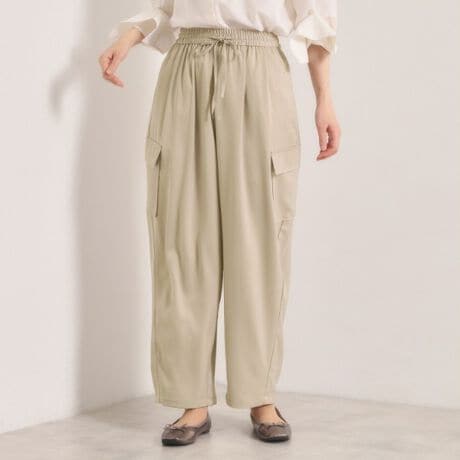 控えめなツヤ感のサテン素材を使用したカーゴパンツ。