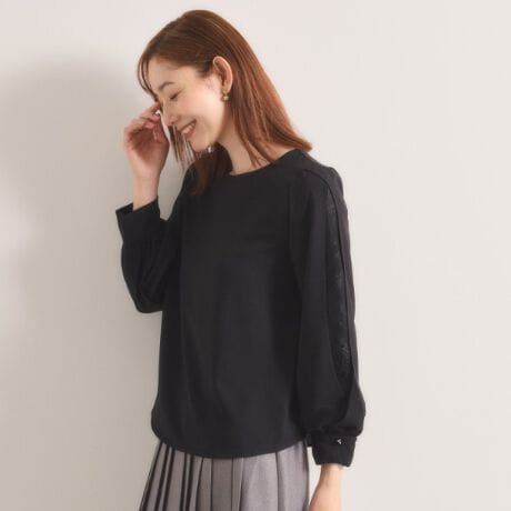さり気なく見える袖のレースが品よく華やぐデザイン。