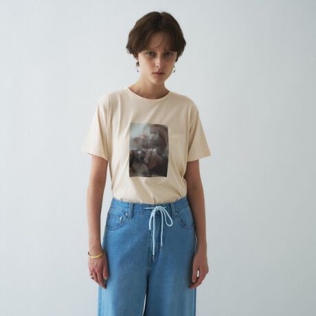 女性らしい装いにも馴染む大人のグラフィックTシャツ。