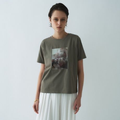 女性らしい装いにも馴染む大人のグラフィックTシャツ。