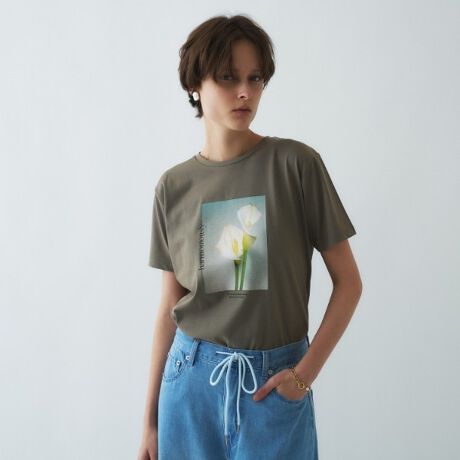 女性らしい装いにも馴染む大人のグラフィックTシャツ。